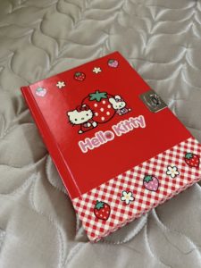 キティーちゃんが表紙に描かれた赤い手帳を。
